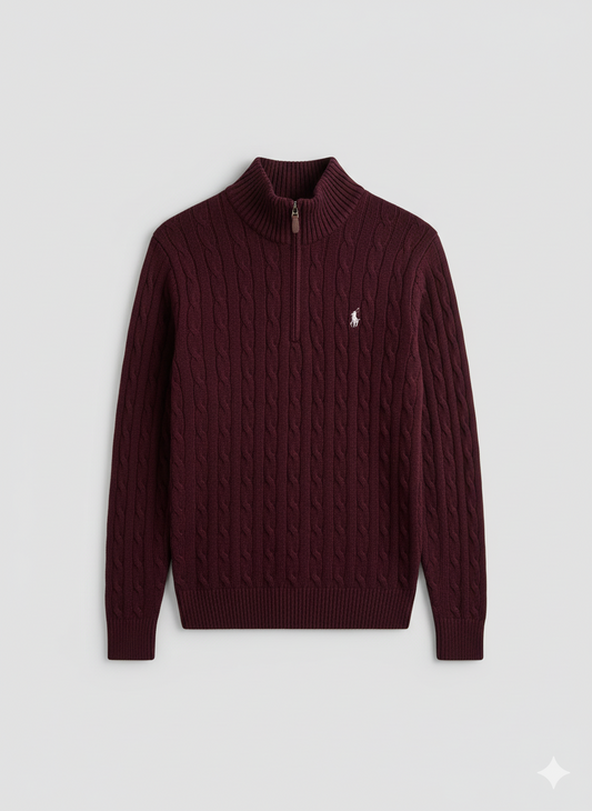 Knitted Quarter Zip Pullover Burgundy