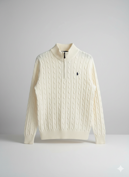 Knitted Pullover Quarter Zip Cream